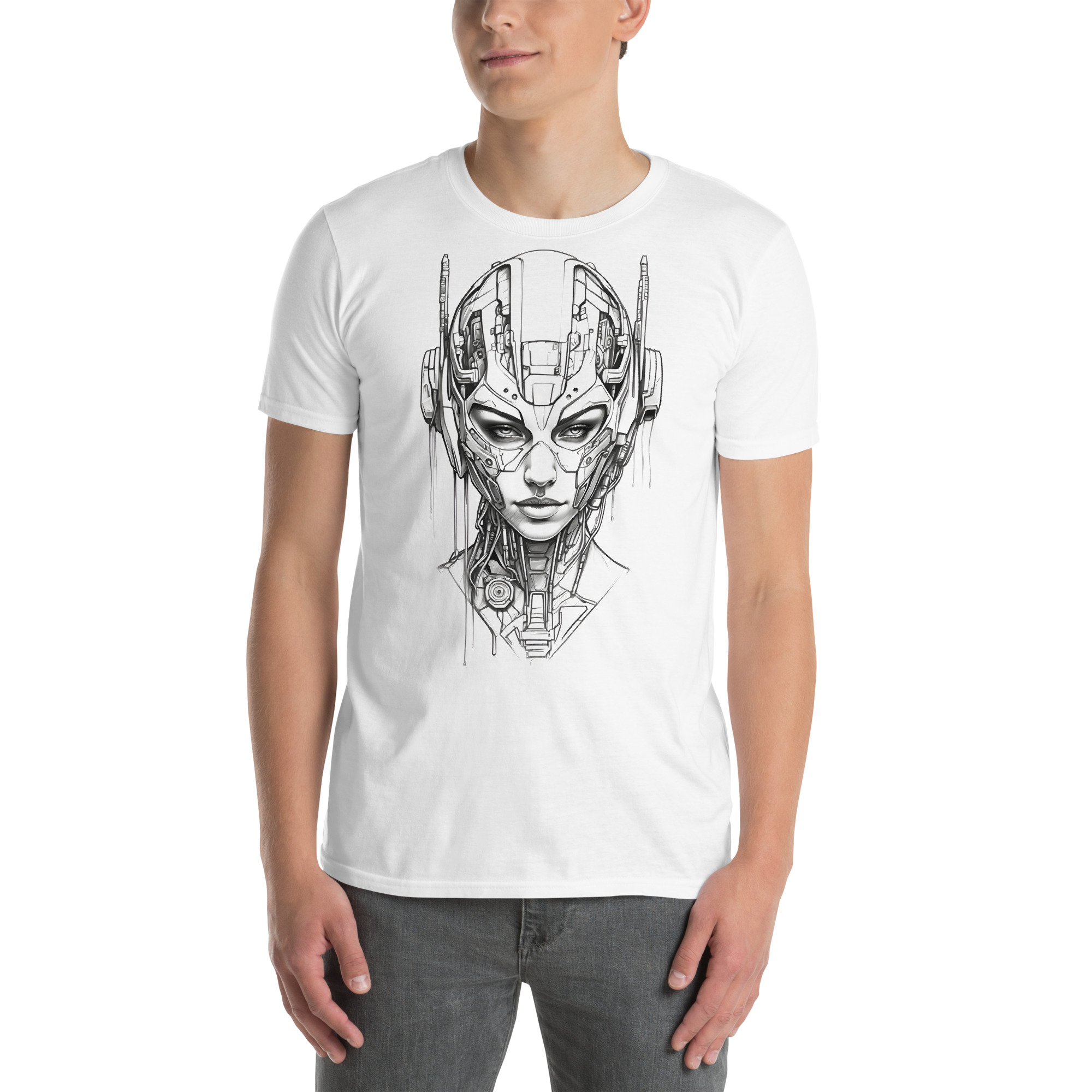 Unser weißes T-Shirt mit einem schwarz-weißen Android Print auf der Brust ist der perfekte Ausdruck moderner Ästhetik. Das klare Design verleiht deinem Look einen futuristischen Touch und setzt dabei auf zeitlose Eleganz. Trage Technologie und Stil gleichermaßen mit diesem einzigartigen Piece, das nicht nur ein T-Shirt ist, sondern eine Statements deiner Individualität. Ein Must-have für alle, die Wert auf zeitgemäße Mode und kreativen Ausdruck legen.